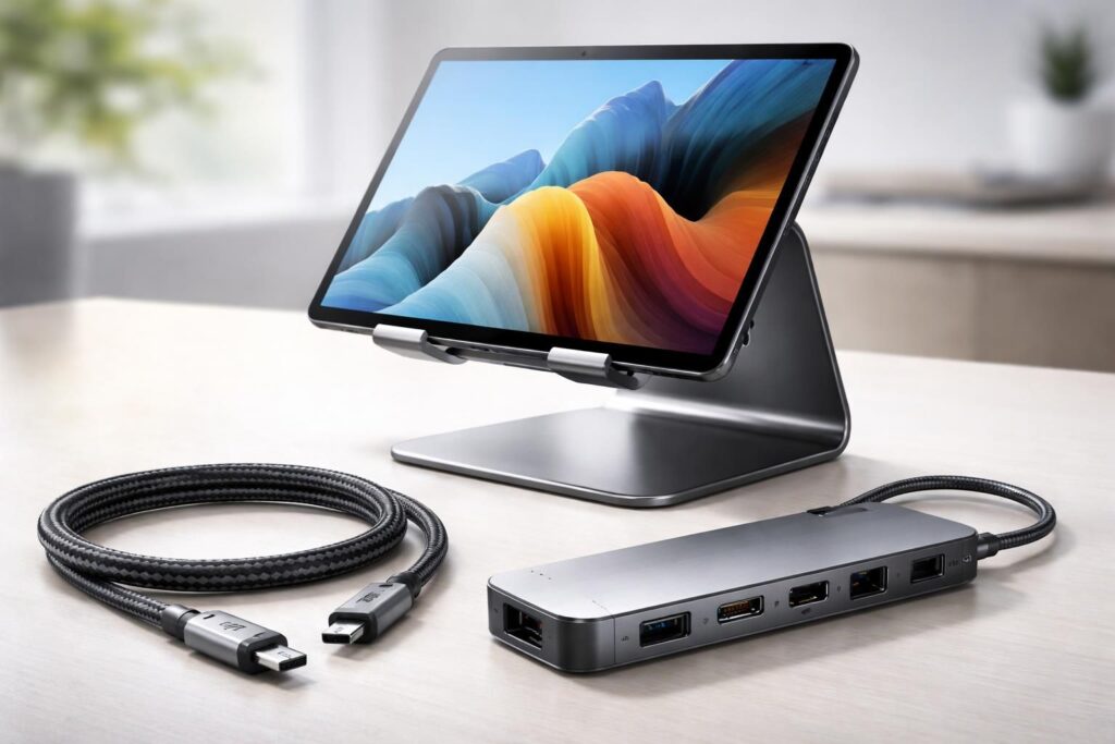 En plus des simples câbles de charge, le marché propose également des adaptateurs USB qui permettent d’étendre les possibilités de connectivité de la tablette. Ces adaptateurs offrent plusieurs ports, permettant de connecter plusieurs périphériques simultanément. Grâce à ces adaptateurs, des accessoires comme des claviers, des souris ou même des clés USB peuvent être utilisés, augmentant ainsi la fonctionnalité de la tablette. Cette extension de ports est particulièrement appréciée des professionnels travaillant en déplacement, qui nécessitent une flexibilité accrue.