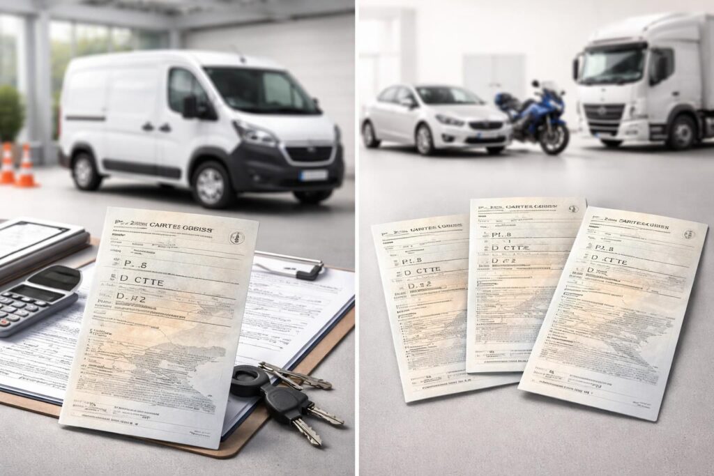 | Carte grise professionnelle | Véhicules d’entreprise | Documents fiscaux, attestations d’usage |