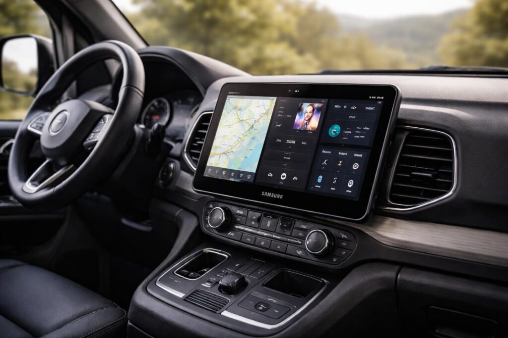L’intégration d’une tablette Samsung dans le tableau de bord offre également une économie d’espace. Dans des véhicules compacts comme ceux aménagés en van, chaque centimètre compte. La tablette, fixée de manière sécurisée, libère des surfaces et permet un agencement plus aéré. Par ailleurs, son design moderne contribue à harmoniser l’intérieur du véhicule avec une touche technologique. L’intégration parfaite de la tablette dans le tableau de bord est également un atout esthétique considérable.