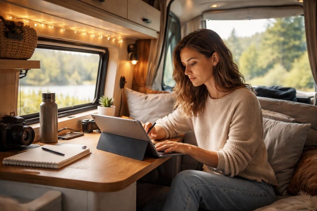 découvrez comment allier vanlife et travail nomade avec une tablette tactile microsoft. astuces et setup pour rester productif entre deux étapes de votre voyage.